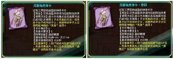 月影兔变身卡:高级敏捷,防御-5%,灵力-5%
