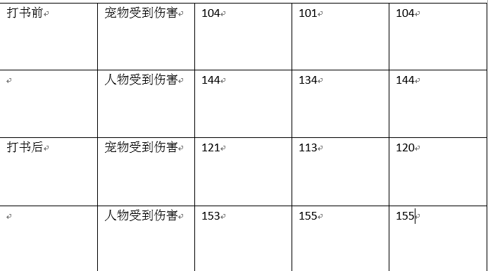 相关资讯: 很多神武宠物技能的效果虽然写了,但是很多玩家并不是特别认同,而且对于这个技能的实际使用效果了解不够,其中凝气就是这样的一个技能。这个技能基本上在看不到有玩家用,下面通过实验数据来看看这个技能的实际作用,先看下技能介绍。 两个小号的BB属性和修炼在此,可以看出被测试猫女法抗指挥为0,测试金鹰法术指挥为0,所以修炼问题不用考虑,并且都是小号,没有坐骑,也不用考虑坐骑的问题。 先来3组,没打高凝气之前的数据,可以看出伤害有波动,但是第3回合和第一回合神奇的又一致了,那么我们就先记录到这。 掉大雷就要一切重来,祝福我吧。 很好,掉了飞行,我们继续测试。 相关资讯: 打完书后的三组数据: 我把6组数据放在一起: 原谅制图的拙劣,大家能看清楚就行了。原谅制图的拙劣,大家能看清楚就行了。 测试用金鹰等级为47级,那么高凝气理论增加的法术攻击力为,47*0.5=23.5。 好了,其实明白的人应经明白了。自己看细节,你就会明白的,另外,测试时都是晚上,不混在什么夜晚减防。 [编辑:风汐]