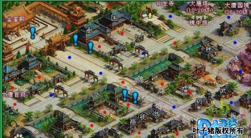 3个小地图的说好了,再说说长安的,由于长安的地图比较大 所以不能用九宫格的方法来定旗,坐标也全凭你自己掌握,附上一张图,长安刷SX的地点,蓝色为经常刷的地点。