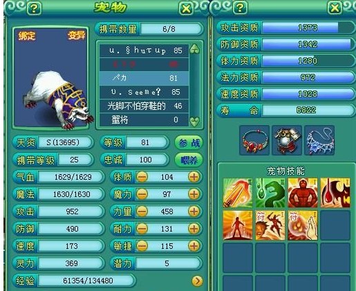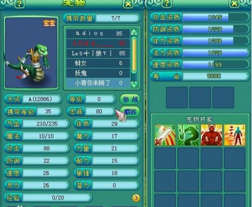 19.还童丹 在这里说一个很多小号都不知道的,清河的领爱网使者,送20个还童。 20级以上,点她,会弹出一个网页,看都不看直接关掉,然后你的背包里就会多了20个还童丹 20.蛮熊,蛇妖,牛头,马面 蛮熊不推荐了,特别是对于新人来说,打书什么的都不懂,不会掉迟钝。 蛇妖,也不是特别推荐,一是没有夜战,而且要掉弱点。 牛头和马面都可以带,高级鬼魂不一定要掉(个人建议不要掉),带个吸血护符就可以冲锋陷阵了。 如果你一定要带这几个宝宝,LZ发一下自己的宝宝,可以做个参考