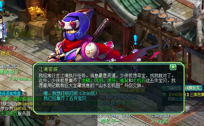 我在一分钟测试中得知。当你留心挖宝传闻时,每一分钟的10之15秒期间,必定出五宝。当然每两分钟的间隔也是有的。不过,我们只需关心当前一分钟。我上个厕所。 当前一分钟的10至15秒内,必定会出五宝传闻。而在当前一分钟的50至55秒内。必出第二次的五宝传闻。经我测试。每次五宝不多于4个,不多于4个。这是其一。其二,在当前1小时内的前15分钟内,大概12至13分钟内,必定井喷一次,所谓井喷,五宝传闻不大于8次,不小于5次。而当前1小时第57分钟至59分钟内,必定,此时间段内几率几乎百分之九十。) 注意,我身处的时间段是挖宝高峰期,你要凌晨2点挖宝我也没话说。 说到这里,可能有些人质疑,我只想举个例子。我曾经一段时间研究各种挖宝技巧,总感觉都坑爹,连百分之五十几率都保证不了。后来,我每天醉心于传闻的研究,发现在某一时间段,出五宝的总是那几个人,当然我也是个聪明人,临时他们其中一个,只问了一个无关痛痒的问题,顿时,我断定他们的确是有技巧的。不过别人和我非亲非故,不可能告诉我。所以,我说这件事,只想证明挖宝这方面,存在即有道理。这是有迹可循的。 [编辑:心情]