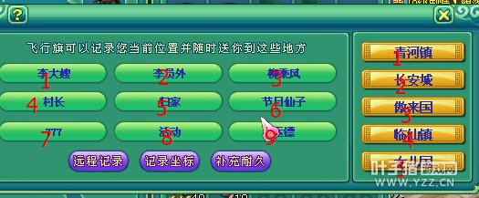 飞行符的五个城市可以用1、2、3、4、5数字键直接飞 飞行旗也一样1-9。 最最容易赚钱的方法是:练个学徒,盒子+帮贡换二药+学徒神武比通通三界+信誉造房子多个仓库,运气好一个学徒带回来240W上下。土豪和刷图鉴的请无视我这种灰尘。
