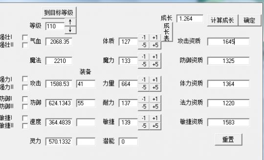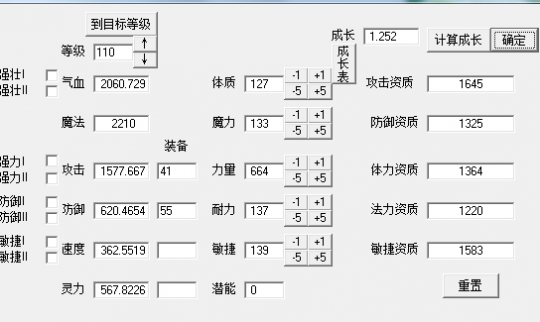 相关资讯: 我们再用不同等级测试一下,先试试110级。 这里攻击差11,防御差4,速度差2。