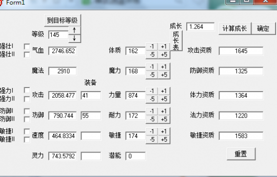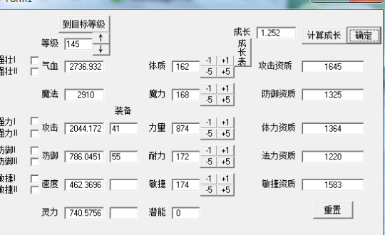 这个是紫色成长1.252的时候。 这里攻击是差了11,防御差了4,速度差2。 相关资讯: 换另一只资质再测试下。 这个是紫色成长1.252