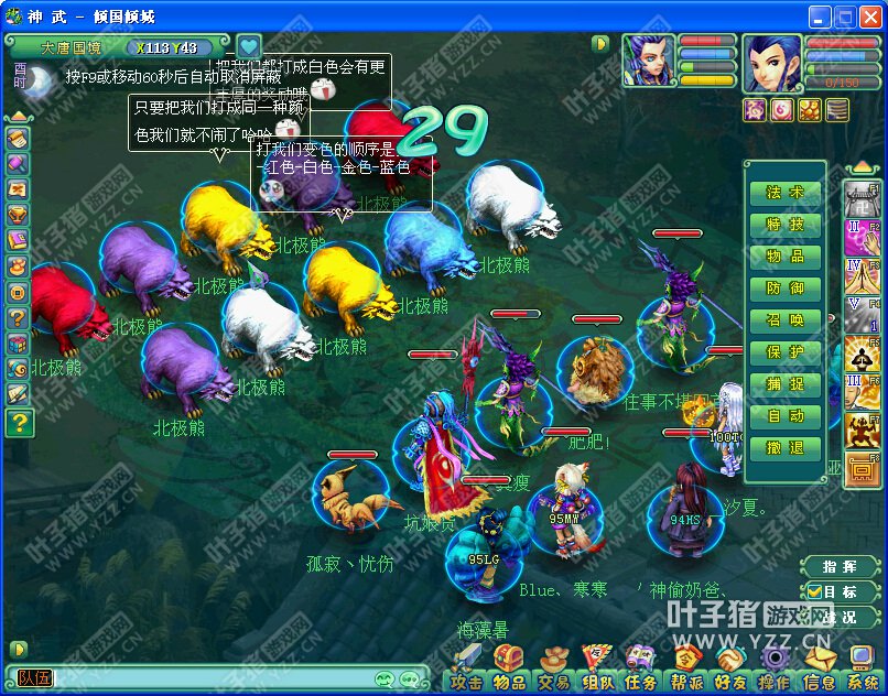 相关资讯: 然后第二轮就是和北极熊玩游戏了,把北极熊达成同一种颜色,颜色顺序是紫色-红色-白色-金色-蓝色,全部打成白色会有更好的奖励,但是要注意不要贪心,因为北极熊第三回合就会跑路了,我们只有2回合的攻击时间。如果确实不能全部白色就选一种最相近的颜色。 还有就是计算好次数,不然少了一下就没有好奖励好惨的!!