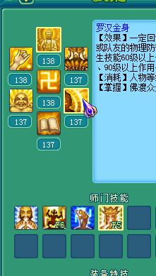 相关资讯: 本次测试 化生技能 罗汉金身 改后效果 化生寺“罗汉金身”:获得的“防护”状态增加“额外降低所受物理伤害”的效果。 测试时间 游戏时间傍晚 HS号无装备 大唐号 装备无任何卦象与影响攻击波动的因素、 测试结果如下 无罗汉效果331 348 341 321 371 310 有罗汉状态227 214 204 201 237 204 无罗汉效果求取平均值 337 无罗汉效果求取平均值214.5 337-214.5=122.5 化生是133级满技能是 138如果脸不好的话310-237=73伤害 用一回合加一个护体 可能只减少73的伤害效果 现在测试133的