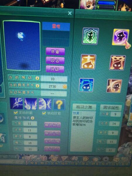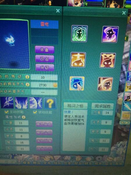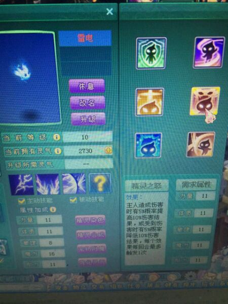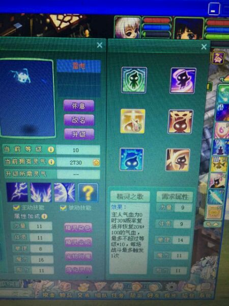 相关资讯: 每周五更新内容中,精灵系统基本上有7个小点的优化, (1)重置精灵石后增加选择界面,允许玩家放弃重置操作; (2)在精灵界面增加兑换灵气按钮,且将灵气上限提高至6000; (3)精灵附魔消耗调整为25灵气每次,半价附魔次数不变,每次附魔有概率额外获得一个附魔属性; (4)调整了部分第四技能的效果; (5)增加精灵第三技能提示,具体属性要求可以在“法术倾向”处查看; (6)拥有精灵第三技能的玩家可以在精灵技能栏处打开精灵图鉴,自由查看所有第四技能的属性要求和技能效果; (7)优化了圣兽石图标,现在可以通过颜色进行区分。 第四技能的效果及其属性点。 精灵之慑:主人受到伤害时,有5%概率将受到的伤害结果的20%反弹给攻击者,每回合最多触发1次; 精灵之怒:主人造成伤害时有5%概率提高10%伤害结果,或受到伤害时有5%概率降低10%伤害结果,每个效果每回合最多触发1次; 精灵之舞:使主人的封印与抗封印成功增加3%; 精灵之悟:使主人受到法术或特技恢复气血效果增加5%; 精灵之歌:主人气血位0时30%概率复活并恢复20%+100的气血,最多不超过等级*10,每场战斗最多触发1次; 精灵之盾:主人有5%的概率受到群体伤害结果降低30%,每回合最多触发1次; [编辑:Hi、何同學]