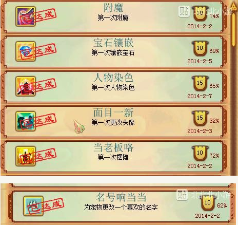 相关资讯: SX的本来就不好抢,谁还挑三拣四呢?最合适的方法还是收券,世界明确喊收SX某某券,会有的,要是没有就待会再来. 这个很好刷,点了巧匠的就自己做,没点巧匠的商会买。 方法:每个家具都有分类,比如桌椅、台饰、地毯等等。如果有三级四级就都放进去,然后再拿2级的补,比如窗帘楼下四个楼上四个放满,地毯能买到的只有一级的兽皮地毯和二级的流云地毯,选取级别高的那个流云,一张一张往家里放,每放一张都会加环境值,放到不加环境值的时候说明地毯类数量够了,不用再放了除非拿三级四级的替换。其他类型的家具也是一样,买级别高的一件一件摆下去直到不加环境值。 说说那些最简单基本的必刷的,却可能被很多人忽略的成就,因为很简单我就不说具体刷法了,检查看看你是不是都刷了.