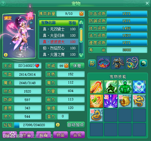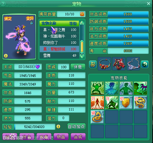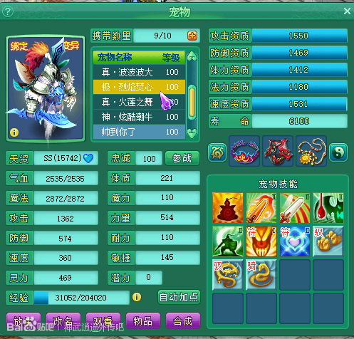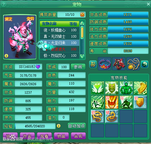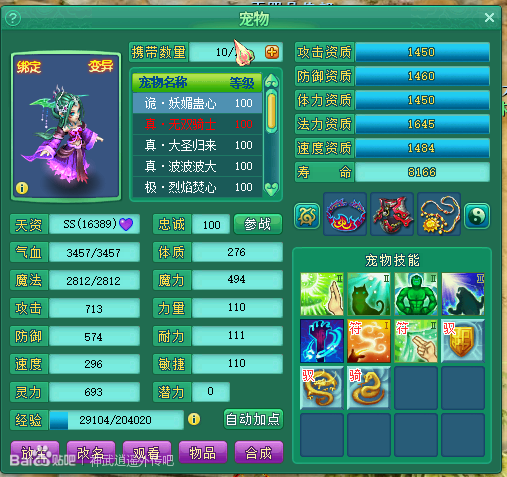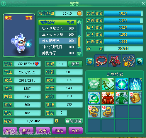 相关资讯: 本人不是很喜欢PK,但是热衷于洗BB,未成品的嵩鼠; 这只烈焰是成本最低的一个BB,高强自带,成本一本高感一本高隐,一本道的BB; 这是我最喜欢的BB,特殊技能没掉,高级报复也是很暴力的技能也就留着了,成本也是很低的一个宝宝,大爱罗刹; 本来不想留舍身结果一直打不掉,高连都准备好了,结果还是只能用来做任务宠了,SX.36一刀一个小朋友; 都说猴子比较帅,于是我也跟风洗了个猴子,这样打书下来便宜是便宜了,可是尼玛我基本不用他; 很多人问我洗宝宝的诀窍是什么,我想这时候重点来了,我已经整理好语言准备把我多年的经验教给大家,可看到空荡荡的车,我又忍了回去; 很多人都说有死骑情怀,虽然我不知道那啥情怀是什么一种感觉,但是为了跟着一堆老板的风,死骑一个怎么够;于是我就悲催了,坑掉我多少神武币,至今未成品; 曾经大爱龙女,于是一口气洗了三个,先来看看我的服战龙女; 那个恐吓的年代,没个高速的恐吓宠是要被鄙视的; 纯粹的面板宠,至今我还没弄到比这个面板高的宝宝,可惜现在长年放仓库,浪费了我多少资源。 最美的宝宝当属大波,可惜这个大波当初直播1800R还是垃圾ZZ,前前后后差不多3000+R,后来就没坚持5技能,遗憾,奇怪的是这大波面板属性还真好啊,很多人问怎么弄,我也不知道怎么弄的; 其实洗宝宝不能急,前期玩神武还没开始投入,投的太急结果性价比超级低,下面我来总结下我的洗宝宝心得; 第一点:心态要好,这就是上层楼说的不能急,作为后期的楼主我来说,不管你出的慢还是快,我很淡定,不会去大比例的投钱来洗,至少我有好几个月没有3金币来洗宝宝,这个说起来容易做起来比较难。 第二点:贴吧很多人发存万丹来洗宝宝的贴,其实是最不明智,千万不要存丹,有丹就洗,神武洗宝宝给我的感觉就像我龙之谷开宝箱的感觉一样是全区给比例的,运气好你洗一次就是你的,运气不好你洗100次是给别人增加比例的。 第三点:星期五LX送的增加技能和资质的F,真的很有用!真的很有用!真的很有用!重要的事情说3遍,这个F没出多久我已经洗出2个5技能的,一定善待这个F,不要给普通的洗,这个只增加技能和资质和BY不BY半毛钱关系都没。 第四点:也是我最执着的点,我所有的宝宝产生点是在长安的一个小仓库里,不管什么原因一定会在那里洗; 第五点:是送给那些想洗5技能的,明确你是否真的要5技能,真的要5技能就不要看5技能一下的技能和资质,不然会乱了你的心,心态没有,5技能就难或者要多花钱; 总结:明确你的目标、心态放宽、不要存丹有丹就洗、善待星期五系统送的F、你的极品宝宝离你就不远了。 [编辑:Hi、何同學]