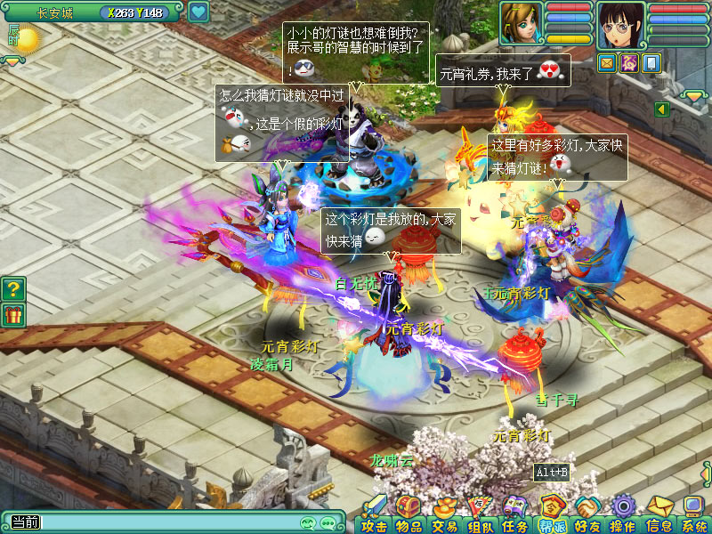 相关资讯: 终于,元宵活动开始了,虽然这意味着春节假期的远去,但是小编相信一个个元宵还是能抚慰你上班/上学的复杂心情的; 毕竟在这一年里,谁没有个多技能但是资质不是很好的BB嗷嗷待哺?等着吃下元宵变身极品跻身排行? 元宵灯会 竞猜灯谜拿元宵 活动时间:2月10日至2月13日,每天10:00-23:00 活动NPC:长安城(233,178)礼部尚书 活动条件:等级≥30级,单人参加 千家万户张灯结彩,神武三界祥和安泰。圣上下诏举办“元宵灯会”活动,招募各位三界侠士前往悬挂彩灯,许下新春愿望,共度欢乐元宵节。长安城礼部尚书也来给各位侠士拜个晚年啦!活动期间,各位侠士在礼部尚书处领取彩灯任务,即可参与挂彩灯、猜灯谜活动,除了赢取元宵之外,还有机会邂逅彩灯仙子哦! 元宵活动将在明天开启,大家的小号都练起来了吗? 元宵礼券获得途径 1.单人活动,活动之后随即给予玩家彩灯,按照彩灯上的地址挂上将会有几率获得礼券,每天活动上限为20次,每2次给一个彩灯,一天可以获得10个彩灯。 2.猜灯谜,上述1中的活动中挂出的彩灯,将会有3次猜灯谜的机会,每天每人可猜20次,答对15次以上答对有个成就,同样的也是随机获得元宵礼券。 抢灯技巧 1.关闭交易开关,虽然自己不会去交易别人,但是不能不防一些人交易你; 2.双开,元宵抢灯最好是双开2个号,一个号抢到后,在完成答题之前,另外一个号点出彩灯对话框,在第一个号完成答题之后,第二个迅速按下答题,手速只要一般快,基本上能抢到第一个,双开情况下,这3次机会都是你的了。 注意事项: 1.元宵礼券是可以交易的,但是兑换成元宵之后就会变成绑定而无法交易。 2.由于新手保护规则,30级小号是没有办法给予礼券的,但是可以摆摊;60级以上自动取消。 3.如果你准备收大量元宵,那么信誉的需求则很大,每个元宵礼券兑换成元宵是需要消耗5万信誉的。 最后,元宵活动只有4天,每人每天的次数也是有限的,能不能获得元宵礼券也是要看脸的,因此小号的存在是必不可少的,就在于是多还是少了,希望大家合理安排,注意身体。 还有少侠估计是打算用R来收元宵的,在此小编也提醒各位注意安全,防止被骗。 [编辑:Hi、何同學]