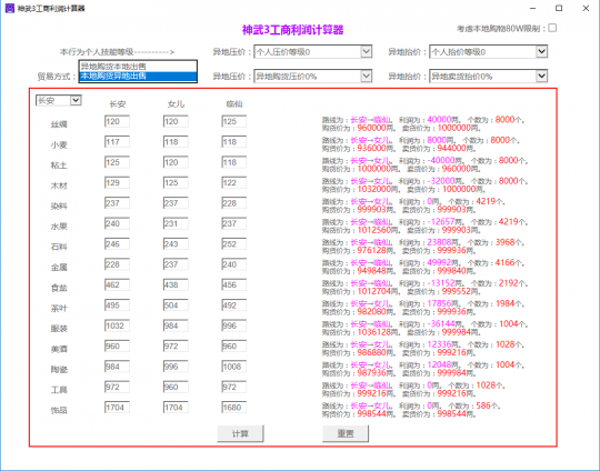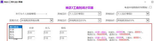 神武3福利:工商业计算器,助你赚千万信誉