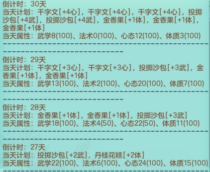 本人玩神武3时间不长,最近养了一个最高属性+便宜的无神功万兽岭 任务活动非常给力,废话不多直接上养育流程 只需要这些道具,最少量的投掷沙包+千字文一看就知道相当便宜! 就能达到如此高强的天赋属性 细节如下: 这些东西耗费了我好多心血呀,为了弄出一个高属性的孩子也是反复修个了好几天!希望能帮到那些想写计划书又不会写,还有那些懒得写的人,唉~~喜欢的顶起 更多热烈的讨论可以到我们论坛帖子里面发表哦 /yzzAdmin/article_add.php?channelid=1&cid=5586 那么这次关于“《神武3》2018最强最便宜无神功狮驼孩子”的相关内容就到这里了,欢迎在下方留言讨论,了解更多神武3的相关内容请关注 叶子猪神武3专区。 [编辑:姚姚]