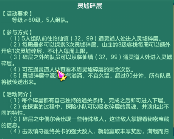 灵墟作为60级以后主要的神武币来源之一如何玩好灵墟拿最大化奖励也是一个职业队长的必修课。 本期教学内容: 1.什么是灵墟 2.灵墟有几层 3.灵墟环境讲解 4.灵魂特性讲解 一.什么是灵墟 在去年没改版以前进入灵墟需要特殊道具灵墟玉珏。(需要带60级以下新人抓鬼才能获得,或者击败星宿)改版以后则在临仙镇NPC通灵道人处全队确定即可进入。 二.灵墟有几层 灵墟共分三层,前1、2层为精英怪,第3关为大Boss。 1、2层会在以下地图中抽取: 1.深海囚牢 2.荒芜秘境 3.失魂之地 4.三色灯笼 第3层会在以下地图选取: 1.无名剑冢 2.试炼之心 3.阴阳幻界 4.石化魔窟 5.破碎灵柩 三.灵虚环境讲解 灵虚环境共分三种,火山、洪灾、雷暴 在没有对应的耐热体质、水下呼吸、绝缘体质的话在天灾情况下打怪会受到天灾(每回合开局对双方的某一方造成一定伤害,速度优先级高于一切。天灾不可被吸收,可触发神佑,鬼魂,援助,保命) 如下图:这个就是火山环境(没有耐热体质就会受到天灾) 每个碎层的环境都可能是不一样的。举个例子: 第一层,火山 第二层,雷暴 第三层,洪灾 但是也不排除三层同样环境的情况。 刚背兽教学:在第三关打大BOSS的情况下,如果有天灾之优势不妨越级挑战一下高难度的BOSS毕竟难度越高奖励上限越高拿的奖励也是更好的。 以下这张是我奶粉带队打的,因为有绝缘体质所以直接选了剑冢里面的最高难度。借天灾之力去挑战高难度boss。 以上攻略仅代表作者的个人观点,如有不同的看法欢迎留言指正 那么这次关于“教你玩神武系列之灵虚教科书(上)”的相关内容就到这里了,欢迎在下方留言讨论,了解更多神武3的相关内容请关注 叶子猪神武3专区。 [编辑:叶子猪小秘书]