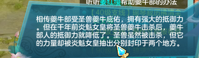 山河图任务第四章夔牛之乱分为4个小任务 1.夔牛往事 通过何道长进入阮铁武的前尘往事 将女皇的命令告知御林使,夔牛一族对此次任务纷纷抱怨,这时阮仲由提出了复活圣兽的办法,但要求夔牛族永远脱离九黎,这时与大长老进行讨论,长老坚决反对,与长老进行战斗 找到阮仲由了解复活圣兽的办法,找到九黎皇女姜书雪,了解到九黎皇女姜书雪要找阮仲由问事情 找到夔牛祭司准备好阵法,找到阮仲由 发现姜书雪回来营救同伴,与之进行战斗 协助祭司进行祭祀仪式的时候发现姜书雪回来营救流火,进行战斗 阮铁武听信阮仲由奸计,最终被黑暗占据,没能成功拯救部族,任务完成。 2.侠与女皇 接受女皇的委托任务,前往夔牛部落调查情况 询问部落老人夔牛部落大变的原因。老人要求帮忙寻找他的儿子,向女皇说明情况 前往镇压之地寻找老人的儿子,找到身穿白衣之人正在发狂,上前用武力制服他 通过行人了解到部落衰败的原因 找到姜红缨询问,听听女皇与部落长老的交谈 为了拯救部落和九黎,前往乌斯藏寻找卷轴秘法 战胜守护兽获得卷轴秘法,送回给部落长老,向女皇回复,完成任务。 3.瑶琴寂厉拂清尘 在长安城遇到正在执行任务的莫轻尘,购买女儿红给莫轻尘品尝,了解到这次任务的情况 向乐坊掌柜打听上古瑶琴的情况,找到文曲星君打听了解瑶琴的奇人的下落 来到昆仑山40,85附近,当前频道打出“长琴仙人我送琴谱来了”,出现NPC 长琴仙人,跟他交谈 仙人说琴弦缺弦,向莫轻尘商量办法,来到普陀找叶清雪询问缺弦一事 在普陀击败心弦内心欲求,回到昆仑山找仙人继续借琴,仙人听了莫轻尘的曲子后同意借琴,将琴带给部落长老进行驱邪,完成任务。 4.愿做寸草报春晖 找到清河镇的老翁,了解到有妖怪作乱,在路上碰到受伤的路人,通过路人了解到妖怪逃跑的线索,来到境外北边查探情况, 向路边樵夫询问妖怪出没的线索, 来到山东附近调查,发现小狐妖,上前了解情况 碰到姜书雪,将妖怪一事告知,此时小灵归来,与其进行战斗 通过小灵了解情况之后,发现小如的哥哥是妖怪假扮的,赶回小如家发现牛妖在闹事 击败妖怪后,小如使用法术唤醒了老人,任务结束。 夔牛之乱与主线剧情密切相关,涉及到了阮铁武以及夔牛部族的尘封往事,完成任务还有物品奖励拿! 以上攻略仅代表作者的个人观点,如有不同的看法欢迎留言指正。 那么这次关于“山河图任务之夔牛之乱玩法指引”的相关内容就到这里了,欢迎在下方留言讨论,了解更多神武3的相关内容请关注 叶子猪神武3专区。 [编辑:叶子猪小秘书]