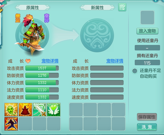宠物是对人物的一大助力,是衡量角色强弱的一大重中之重。 今天我们就来讲讲,如何养成一只极品宠物吧。 前面先说,因为主要讲的是步骤,所以可能在某些地方不会展开讲下去。 好了,废话不多说,直入正题。 首先,除特殊宠物以及个别宠物之外,得到的宠物都是野生状态。 那么,使用还童丹洗宝宝,就是我们首先要做的事情。 因为我们要打造的是极品宠物,所以,普通宠物显然无法满足我们,必须要有变异才可以。 拥有变异宠物之后,我们仍要继续洗宝宝。 什么样的宝宝才能满足我们的要求呢? 要看三个地方。 首先是重中之重——技能。 通过描述我们可以得知,变异宠物有几率获得一个额外技能。 就目前来说,一只满技能(原有技能数+1)的变异宠物,差不多就可以用了。 不过,还要看以下两个地方。 一个是宠物资质。 一个是成长率。 成长率中有着一种说法,携带等级越高的宠物,成长率越高。 结合,宠物技能,宠物资质,成长率这三个地方,我们再来看什么样的宠物可以满足我们的需求。 首先假设一种情况,宠物技能满,但宠物资质,以及成长率低得过分,那么,这一种显然无法满足我们的需求。 若是宠物技能满,宠物资质高,但成长率低,这一种勉强可以满足我们的需求,当一只隐攻宠。 除此之外,还有各种各样的情况,但由于我们今天要说的是极品宠物,就直接追求三高。 关于技能、宠物资质、以及成长率最后再提三点。 第一点、宠物技能无法通过打书将技能增加至原有技能+1,只能通过洗丹,或者炼妖(不推荐新手去做) 第二点、宠物资质可以通过元宵提升资质。(元宵可以在每日珍宝或者各种礼包中购买获得) 第三点、成长率可以通过灵能果提升。 好,拥有一只三高的极品宝宝胚胎之后,我们接下来要做的是什么呢? 不是打书,而是洗点。 洗点可以选择在临仙镇如意先生处花费金币洗点,也可以从副本商店以及荣誉商店中购买宠物洗点丹。 其余渠道的洗点方式不大推荐。 洗点之后,根据自己培养需求加点。 接下来,就是攒神武币升级宝宝,准备打书,同时,如果有需要,还要将资质吃满。 神武币攒得差不多,就可以开始打书,不一定要满级才打书。 因为是要极品宝宝,所以,打书一律使用高级兽决,低书不配赢。 具体的打书要看大家想要打成什么样的宠物,展开来的话,篇幅过长,所以,不在这里多说。 打书的同时,要上护符,这里建议双高技能护符。 当然,实在没有也可以等以后换,不推荐新手去洗什么护符。 配上护符之后,顺带上另外两件宠物装备,一件高攻击或者高灵力,一件高防御。 接下来,就要上饰品。 当然,可能因为神武币消耗过多,也可以等以后再上,但饰品是必须要上的,即便再贵。 饰品之后,就是洗炼石。 以物理宝宝为例,洗出六种金色有字,且其中四个带离字的符石就可以了。 接下来,就是配上坐骑的驭兽技能。 在培养极品宠物之前,驭兽技能就应该是已经有的,所以我没有放在前面说。 配上合适的驭兽技能后,就是魂玉。 化龙鼎的魂玉一定要上,因为大家培养的宝宝不同,这里就不作推荐,大家根据自身情况自行选择或者在游戏里询问。 宠物培养到这个地方,也就差不多了。 最后就是漫长的化龙鼎,以及有关宠物的修炼。 然而到这里,还只是一只宠物。 神武需要的宠物大概是7-14只。 一般情况下,7只是能上场的宠物数量(套上人物装饰后),12只的话就已经足够,如果是想要打高端战局,就看团队的需求吧。 总之,培养宠物是一个极其漫长的事情,大家要佛系一点,不用太急躁,当然,如果是2400大佬就又是另一回事。 好了,本篇攻略就到这里,希望对大家有所帮助。 以上攻略仅代表作者的个人观点,如有不同的看法欢迎留言指正。 那么这次关于“极品宠物养成详细步骤”的相关内容就到这里了,欢迎在下方留言讨论,了解更多神武3的相关内容请关注 叶子猪神武3专区。 [编辑:叶子猪小秘书]