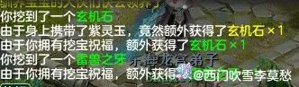 在挖宝图时,少侠的紫灵玉和挖宝祝福,仿佛提前说好一般,竟然同时触发,莫非这真的是在暗示少侠,来上3张山水玄机图? 或者说少侠再去祈福看看,说不动还有山水玄机祝福哦~(偷偷想一下应该不过分吧)