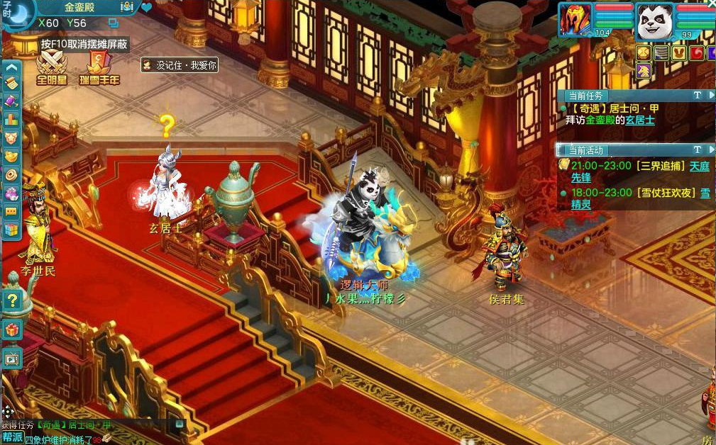 《神武4》有心栽花花不开,无心插柳柳成荫,奇遇一直蹲蹲不出,没想到在路上走着走着就出了。玩家“是丸子哦”给还没蹲出来的大伙们带来参考新坐标。 长安辰时(437.105) 闻鸡起舞奇遇必须先有笑春风的奇遇,看奇遇剧情,金悦院和乐艺坊打擂台,可能是相关的。 行侠仗义:依旧是长安江湖秘探(250.95) 需获得“好一副热心肠”成就 笑春风:播放舞台剧笑春风时,乐艺坊剧院老板有几率触发,NPC 当前说话,不弹窗(笑春风播放时间:11:00-11:10、13:00~13:10、15:00~15:10、17:00-17:10、19:00~19:10、21:00-21:10) 新长安为屋里出现戏院老板npc,注意不是在屋子的戏院老板旁边蹲! 奇判:长安(469.136)(228.143)附近有几率触发 需获得“豪商(卖出 5000W)"成就 居士问.戊 (405.270) 怪诞琴事(485.135) 神秘客人 乐艺坊里面出现戏院老板npc当前说话 金戈情(234.183) 居士问.甲:金銮殿(60.56)附近有几率触发。答案:鹿是孙将军射死的。 居士问·丙:青河镇(135.37)附近有几率触发。答案:小倩,1+9=10;小虎,3×8=24;小雅,5-4=1;小石头,6÷2=3;剩下一个球:7;8号球是小虎 居士问·丁:国子监(54.41)附近有几率触发。答案:诚诚拿自己的书袋,诚诚拿鹏鹏的书本。 明明拿贤贤的书袋,明明拿自己的书本。 贤贤拿鹏鹏的书袋,贤贤拿诚诚的书本。 居士问·己:长安客栈(64.23)附近有几率触发。答案:薛生:镖师,珍露酒。 黄生:驿使,蛇胆酒。 陈生:税史,女儿红。 居士问·庚:长安衙门(78.54)附近有几率触发。答案:破案数量:陈捕头>张捕头>许捕头>黄捕头。 居士问·辛:大唐境外(210.24)附近有几率触发。答案:阿明:青河镇;阿亮:长安城;阿力:傲来国;阿文:临仙镇;阿强:昆仑山;阿虎:乌斯藏 观光团之国子监:新长安(282.221) 欢迎在下方留言讨论,了解更多幻唐志的相关内容请关注 叶子猪幻唐志专区。 [编辑:ssc]