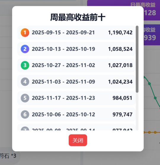 幻唐志之前老是看到有人争论一天收益能不能到10w,感觉有点离谱。记录了3个月自己99的号,每天10x神的收益,活动每日全黑,月卡党,不买礼包不赌山水(活动赠送的除外),记录如下。 正常没有什么好的限时活动,70w一周大概是这样,拉长时间线也差不多,会做一个大数据的平衡。顺便发下每月每周每日的前十收益,这期间我甚至没出过宠物饰品,如果出了只会更高,同时最低每周也有80的收益。 想表达的是,只要你日常活动都清了,收益是跟的上的,日常活动不清,然后吐槽收益变少没道理的。我也是上班族,平时活动只有晚上在,周末手机挂。 我自己99的号也是这个数,我想对那些说99每天平均10W神武币只有运气好才有的人说,是不是你不够努力。 这个是我用NodeJS做的,只是想记录一下日常收益,后续想要记录的越来越多,就慢慢做成现在这个样子了。还做了一个潜龙的进度,但是好久没玩,不知道该从哪里追起就先把神武币都攒起来了。 号主运气还可以,我每周统计基本上都在60左右。积分那些不换,英雄试炼和奇遇不做。比武没时间。其他的都弄。可能是因为送的山水什么的都开不出好的东西的缘故?确实难以理解一周70-100万的号是有多香。 欢迎在下方留言讨论,了解更多幻唐志的相关内容请关注 叶子猪幻唐志专区。 [编辑:ssc]