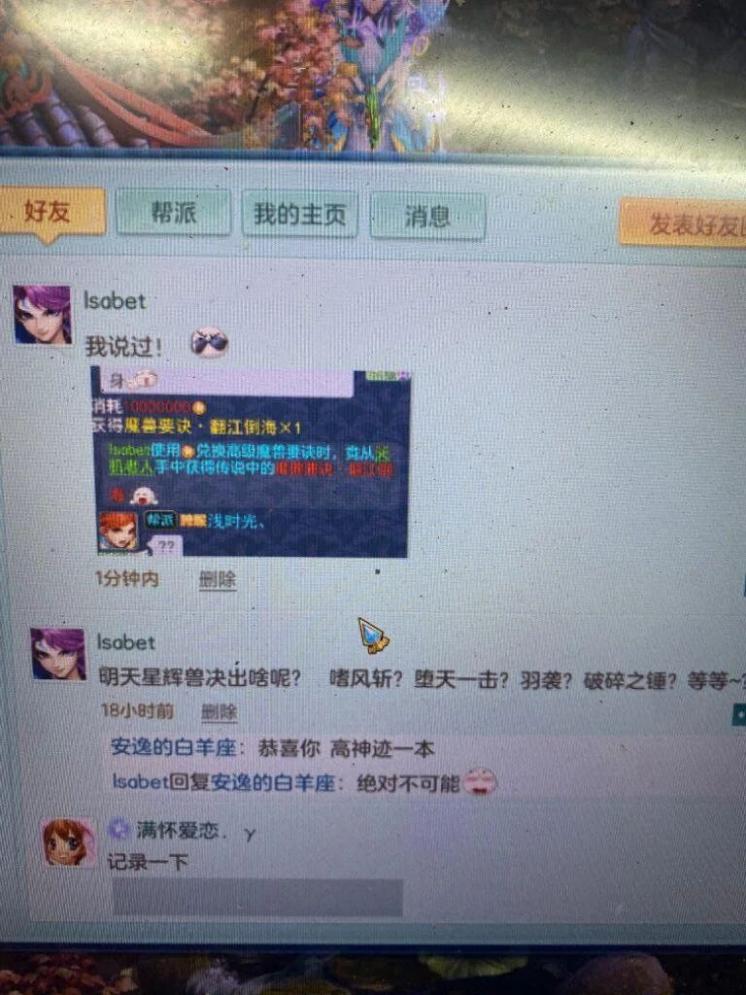 投稿人: 寒千雪 “好友圈提前一天许愿.没想到第一次兑换就出特殊了” 许愿成功!好友圈的记录功能在此刻具象化,期望所有的少侠都能好运爆棚,欧气满满! 投稿人: 一叶丶初 “一次灵虚三本潜能,总奖励40万” 少侠收获颇丰,一趟灵虚就获得近40w银币!各位少侠在灵虚中获得过什么丰厚奖励呢?欢迎在评论区分享! 投稿人: 战盟用户39****29 “奇货礼盒 嘿嘿 1神武币换高必” 1银币换取高级必杀!开启礼盒前永远不会想到会有怎样的惊喜,好运爆棚,感谢分享! 欢迎在下方留言讨论,了解更多幻唐志的相关内容请关注 叶子猪幻唐志专区。 [编辑:ssc]