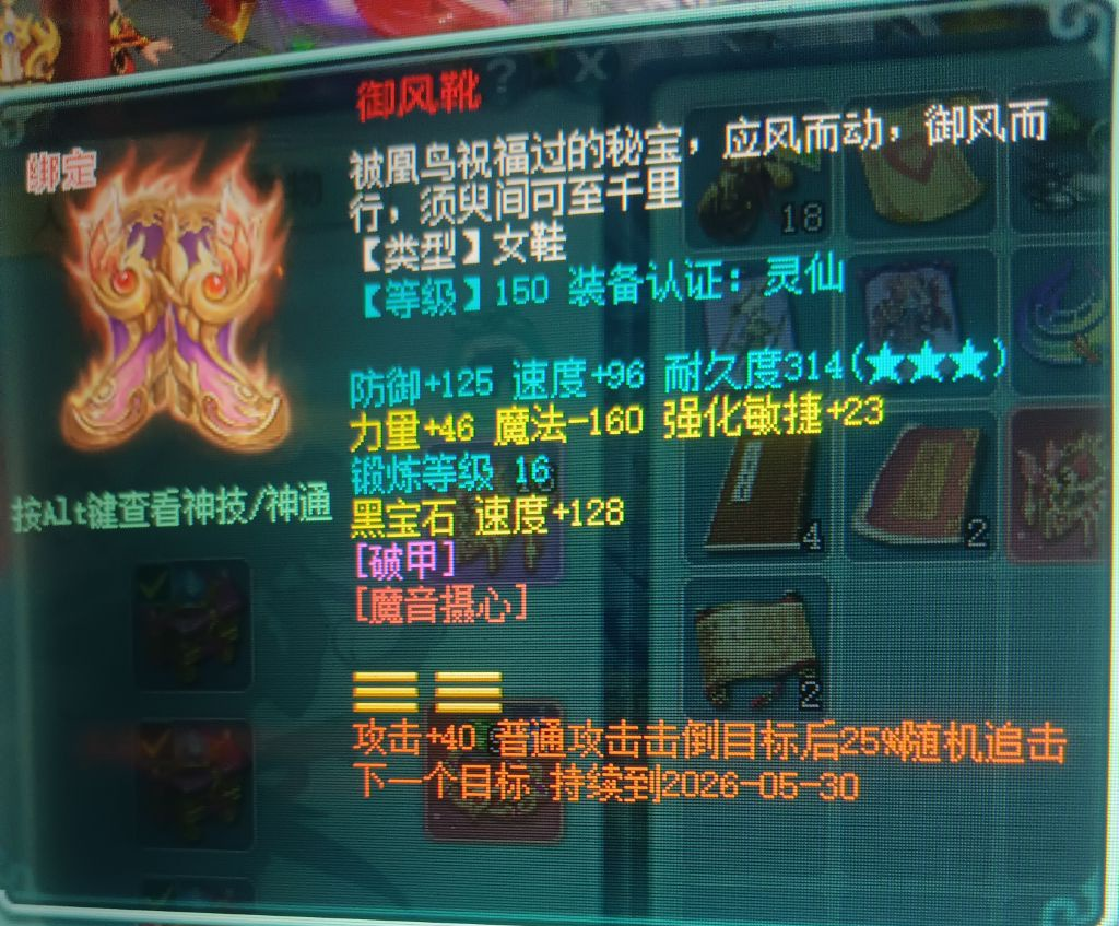 投稿人: 不爱我的我不救 “三红高攻击 击退 易成长 四灵诀单加武器,满前排满防五雷连诛帽子,两个破甲双红帽子鞋,可惜没有法术缭乱衣服鞋要不然玩个法师也很好” 930攻击的三红武器、满防单加五雷连诛和破甲双红的帽子,还有破甲单加鞋。少侠这一套装备给物理输出算毕业神装了。既可以组双破甲提升输出能力,还能选择满防鞋增加生存。如果有法术缭乱衣服转法师也是不错的选择! 投稿人: 弦外知音ぃ “150的鞋子有着高达90级装备的黄字!” 易成长+匠心的鞋子非常适合追求速度的门派,神技卸甲比较契合封、辅,这件装备很不错。美中不足的是黄字单加的属性数值小,少侠会选择使用,还是继续打造更完美的装备呢? 投稿人: 带着眼泪流浪 “打造出这双鞋子,都让我万兽转法系,要不要转呢?” 法术缭乱+烽火连城的双红是法系输出的理想组合。完美双红搭配黄字单加,这件装备非常适合法系。各位少侠会为了这件装备转到法系吗? 欢迎在下方留言讨论,了解更多幻唐志的相关内容请关注 叶子猪幻唐志专区。 [编辑:ssc]