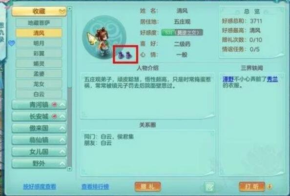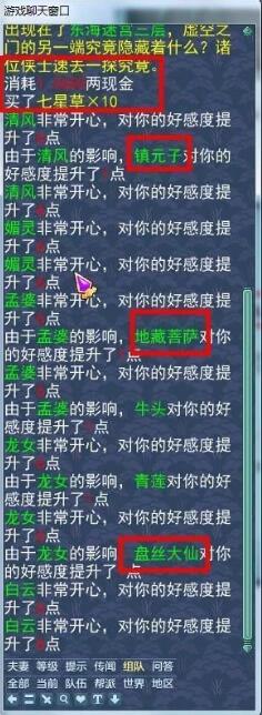 以前也一直没去注意恩仇录到底是什么东西。 最近发现可玩的东西少了。精灵有了,符石(非土豪玩家,所以只能慢慢搞),宝宝也有了,装备也够了。人生没啥追求了?? 突然发现有恩仇录这么一个东西可以玩玩。 而且还有额外属性可以增加。 不要小看了这几点属性。。。往往你跟高手之间的区别就差了这几点属性而已。 ——废话不多说。。。。直接上正菜—— 我看过很多攻略。。。都是说送谁加什么属性,怎么送怎么送。。。。 (什么古董啊,送花啦,庭院装饰啦,三级药拉。麻烦的要死。每次上线要花很多钱买那么多东西) 总结一个字。累............ 我这里有终极偷懒办法! 不多说。直接上图 我的持续一个月的成就! 虽然不高。但是赢在非常轻松。 必备条件: 四级仙灵店铺一个。 然后第二步:收藏这些NPC 很多人困惑。为什么要收藏这些。。。 别急,听我娓娓道来。 第三步:打开仙灵店铺 找到七星草。然后,购买十个。总价:13650大洋。(买紫兰花也可以。价格是一样的) 很多同学看到这里。聪明人也许瞬间就懂了我要干嘛了 第四步:打开恩仇录,找到收藏。 找到上图有两个袋子图标的NPC,直接赠礼。送什么呢?送刚刚买的二级药。也就是七星草(为啥不买紫藤花?因为七星草可以加蓝,有时候买多了不怕。比五加皮好用多了) 我就是这么经济实惠!!! 按照这几个NPC去送。后期哪些师门呢? 敏捷,耐力,体质都有了!!!每天一万多。三十秒解决。轻轻松松! 那么这次关于“神武3小技巧:每天30秒轻轻松松搞起恩仇录”的相关内容就到这里了,欢迎在下方留言讨论,了解更多神武3的相关内容请关注 叶子猪神武3专区。 [编辑:姚姚]