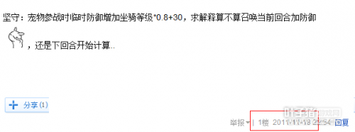 推荐阅读: 在新版驭兽出来之后,很多玩家开始进行新御兽的测试,但是有玩家发现,旧版驭兽“坚守”的数据出现了异常,似乎被暗中减弱了效果。下面来回顾下这位玩家的实验: 玩家的宝宝是110级宝宝,带高夜战(晚上不减防),在进入战斗之前的面板数据是: 进入战斗之后通过龙宫查看到的数据是: 速度上有差距是由于乱敏造成。 排除了忘记管制和晚上减防等因素以后,你可以发现坚守增加的防御是:744-689=55。 推荐阅读: 而在之前的改动中,所有驭兽的描述都改成了一定了,也就是没有明确显示计算的公式,下面按照这个数据我们来反推一下计算公式: 最早的时候坚守的面板公式是:等级*0.8+30,后来慢慢改弱了一些,但是如果按照这个最老版的公式计算的话,那么110级坐骑加防的数值是:118,比现在多了63点,一倍多。 推荐阅读: 根据朋友的提示,之前的公式再修改之后改成了等级*0.4+20,按照这个公式计算的话110级坐骑增加的防御是64,还是比这个55要多。 上面这个公式经过笔者在度娘查询数据核实之后,确实是有过这么个计算公式,但是*0.8的公式最早是官网上出现的,而后者的计算结果和55相差不大,那约莫估计是后者的浮动问题。 那么这次的改动真够诡异的…… |