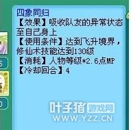 五庄 四象同归: 这个技能如果拿到PK中来的话,是一个非常不错的技能,在没不想浪费药和愤怒的情况下,如果下个回合能够预判到对方出手会封印这边的物理输出的话,直接一个四象同归就能够预判到了,怎么感觉有点像是不消耗愤怒的水清呢? 化气为剑:
