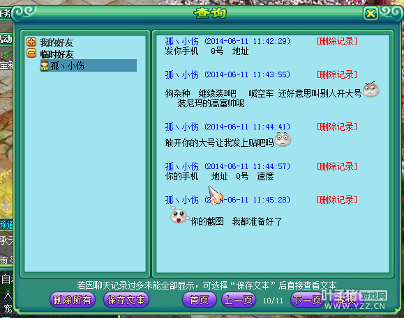 相关资讯: 我想有些时候几轮副本下来都一直空车的话,应该会有很多玩家心里面不爽,在世界喊下,怎么副本又空车了。可是今天我就遇到一件事情让我哭笑不得。副本连续空车我就在世界频道喊了声怎么副本一直空车呢?然后居然有个SB就直接开号骂人了?试问我就说了句怎么一直空车,至于这样喷人嘛?难道你的语文老师不是教你读书?而是教你喷粪的?下面就来看看这位天下无双的喷子吧。 起因我上面也说了,他加我好友后就开始一直喷了。我都不知道他是不是周星驰的电影看多了。要不哪来来的这般功力啊?? 相关资讯: 开口闭口就屌丝什么的?话说难道是你家里人的钱多让你产生了优越感?要不然你秀什么啊?天下区土豪这么多。也没见你这么喷人的! 喷得多有难听你们自己也应该可以看到了吧。 相关资讯: 还爱玩玩,不玩滚。游戏是你家开的?LX是你亲爹? 不是不叫唤了,是根本就没必要跟你这样的SB对骂,如果是这样的话。我跟你还有什么区别可言? 相关资讯: 谁说玩游戏就一定要有头像的?之前那个23级的卡级大爷,人家不是也玩得很好嘛?土豪,你那么有钱你也去弄支服战队伍啊。 然后,没办法,为了证明我是有大号的人,可是这个逗逼还是一直喷人。 相关资讯: 我要是真想买头像,会少花那点钱? 还骂什么小学生,你才是小学生,你全家都是小学生。 相关资讯: 还要我发什么手机,Q号,地址,还玩现实? 来曝光下这喷子的ID。话说这个帮派也应该把这样的喷子T了吧。绝对影响这个帮派的荣誉啊。本来是不想发出来的,没办法。这个喷子实在让人无法忍受了。 [编辑:asd_眷恋]