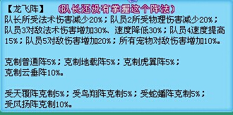 相关资讯: 凶命赫赫,铁血王朝谁见证。 摩拳擦掌,华山之巅谁称雄。 好久没有写关于服战的东西了。好像最近一次还是上次服战之前的历史数据。 而且最近好像我有带了一波节奏。听了我们队某位高人给我的开脱后,我好象心情开朗了很多。所以我不会再回击和理会那些东西了。 由于仓促起笔,心中没有明确的方向,文章可能不好看,对自己没有足够的信心。如果写出的东西与各位看官的观点有冲突的话,欢迎大力拍砖。再喷的基础上,请带上你的核心观点。互相探讨交流。谢谢! 一、阵法属性相克大肆改变。双输出队再次得到加强 其实这个应该算是,上个月服战应该就提出的观点,但是由于本人比较懒没爱写文章。而且好像大家都没有提到这个。那么我就先抛个砖。 本次的改动有哪些亮点呢?由本人略讲一二。 首先 龙阵不被鸟阵大克了。那么龙阵打鸟阵除了速度上吃亏点,再攻击以及抗性上,不再吃亏了。而且大克龙阵的阵居然是风扬阵。而风扬阵赖以成名的翻牌绝技——寒风侵袭又被龙阵的阵技天敌克。所以再失去风阵最大的翻盘特色后,依靠大克的属性加成。风和龙到底在场上更有优势是要打上一个大大问号的。 所以造就了什么? 那就是 能将龙飞阵属性发扬到极致的双输出队不再惧怕被大克。那么是不是可以说,如果属性差距不大。龙阵可以打一切? 请看一下龙阵的属性加成。 总数据20+20+30+15+20+5X10= 165%的加成冠绝全神武与加强后的地阵持平。请不要纠结前2个20%是单项加成。通过职业特色完全可以弥补另外那20%的弱点。 而且 输出端 20+30% 50%的输出端加成。 完美秒杀 虎阵的 25+10+10=45% 风阵的20+10+10=40% 攻击加成 当然了 你非要拿天阵说事我也没办法。哈哈。开天阵PK大概不被打出翔。 说到底1DF+4法系的生存组合只能存在于低级PK。