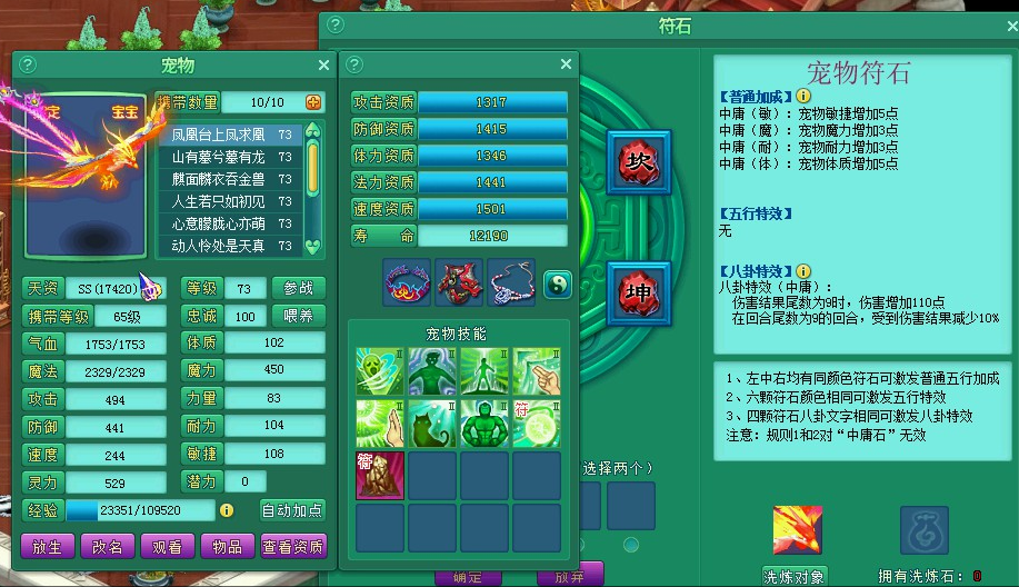相关资讯: 又到了任性图文解说时间了(时间并不稳定),对于神武看脸外传来说,你的运气和脸还好么??你是否深受LX的眷顾?打书一本道,装备一次出,奖励无限好?又或者是打书无限互顶?装备无限白板??来和大家分享一下你的神武吧。 一、沉鱼第一凤凰 还记得那只史上第一的炼妖幽灵虎吗?这里有一只沉鱼第一的凤凰,小编一眼就觉得他们还是蛮合适的,不过这只凤凰是少主阶段和幽灵虎还是有点差距的。 但是并不妨碍我们来欣赏这只第一的凤凰,天资17420,故意遮住的成长,一看就不是红的,不过作为法宠还是很无所谓的,资质....打书的话,嗯嗯,是只法宠... 这只凤凰你们还满意吗? 二、炫耀装备?? 话说小编无聊闲逛看到了一位玩家在炫耀他的装备,一只是120级鞋子,易成长+玉清,这速度加的有点多;另一个是个愤怒+笑里的腰带,这两个简直就是辅助神器啊。 小伙伴还是很机智的,仅仅通过上的宝石就能看出这位玩家不是辅助,不是辅助晒什么辅助装备!?! 玩家表示已经准备转门派中。 三、被帮派禁言 不就是得了个银河加护吗?银河加护不就是有双技能吗?双技能不就是正好是高强力+剑气吗?? 为什么要被帮派禁言??禁言就禁言,还三天?? 对了,你们说这个护符能得几分?给什么宝宝带比较好??是刚刚拿的。 嗯嗯,就这样结束了。 独乐乐不如众乐乐,来和大家一起分享你的神武生活吧; [编辑:Hi、何同學]