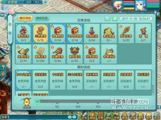 【节日活动】 2017年5月27日,在“天下无双”、“风云再起”、“紫气东来”、“浩气冲霄”、“普天同庆”、“四海升平”服务器开放测试端午节系列活动,5月28日至5月30日全服开放。 1、端午庆典: (1)节日期间每天的10:00-23:00,30级以上玩家可以在礼部尚书处领取单人任务“端午庆典”; (2)每人每天可以获得15次奖励,完成祭祀任务还有可能获得永久增加人物属性的五色神粽。 2、水妖作乱: (1)投掷粽子时有概率在随机地图中刷出水妖,角色等级≥30以上的玩家可以组满5人队伍可对它们进行驱赶; (2)成功驱赶水妖可以获得奖励,每天最多获得5次奖励; (3)服务器等级≥60级后,当水妖被驱赶到一定数量时会在随机地图刷出水妖统领; (4)水妖统领刷新前5分钟会出现预备传闻,等级达到60的玩家可组队进行挑战; (5)每人每天只能获得1次挑战水妖统领的奖励。 3、制作粽子: (1)节日期间,每获得10点活跃就可以获得随机的一种粽子材料; (2)集满3种材料即可到礼部尚书处换取各式各样的粽子,有可能获得永久增加人物属性的五色神粽; (3)每人每天最多可换取10次粽子,每年只能食用2个五色神粽; (4)节日期间可花费信誉到礼部尚书处弥补往年缺失的属性点。 温馨提示:在5月30日,可以到“礼物仙子”处领取端午节的节日礼物。 以往玩过。只是获取材料的方式不同,每获得10活跃度可以获得材料。最快获取活跃度的途径:1000修炼经验,200威望 【玩法调整】 1、门派转换规则的相关调整: (1)新增消耗人物经验抵用部分转换门派所需的金币或神武币的功能,最多可抵用20%的转换费用,等级越高消耗经验越多; (2)降低了高等级玩家转换门派所需金币或神武币的消耗。 可以消耗经验抵消20%金币或神武币。对卡级或者满级是个不错的设定。 2、日程界面全新改版: (1)每日活动分页包含原有的“日常活动”和“限时活动”分页,日常活动使用全新的活动图标; (2)双击活动格子可对活动进行关注,右键活动可查看其具体信息; (3)部分活动新增活跃获取提示,可通过活动左上角活跃度图标进行查看; (4)“日常活动”中新增“各地活动”,右键点击后可查看当前部分周活动的进度(如镇魔卫道,灵墟碎层等); (5)可通过点击日程界面下方活跃进度条直接打开幸运转转乐界面。 最初的界面清晰易懂。反正越改越看不懂了。 3、跨服切磋相关调整: (1)全服开放“跨服切磋大厅”,可前往长安城雷药儿处点击“进入跨服切磋大厅”了解详情; (2)跨服切磋将以“房间”的形式进行跨服匹配和约战; (3)来自不同服务器的玩家可以进入同一个房间进行组队; (4)在房间里组建人员完毕后,可以进行跨服匹配,指定ID约战和指定房间号约战。 可以和不同服务器的人组队,形式相当于人物排位赛。 4、神武币交易中心支持批量购买和出售修炼丹。 方便70级以上赶修炼的玩家更快的购买20个修炼丹。 5、交易中心不允许寄售被使用过的玉蓉糕、五味羹、玉琼浆和耐久度<100的暗器。 免得被坑。人家用过的东西你愿意用么。。 6、调整了在林惊羽处打工时所获得的现金收益。 体力还是去摆摊打造合适 7、本次维护后将会给参与青岛见面会的到场玩家发放称谓和礼包。 继5月21日青岛见面会圆满结束后,神武嘉年华将于5月28到30日在青岛万达广场举办。无需报名即可前往,我们期待你的到来! 【BUG修正】 1、修复了特定情况下获得了成就但是成就界面未显示的问题。 2、修复了特定情况下背包格子不显示物品的问题。 3、修复了115、120级普通支线可以组队进入战斗的问题。 4、修复了特定情况下进入游戏后无法听到背景音乐的问题。 [编辑:Hi、何同學]