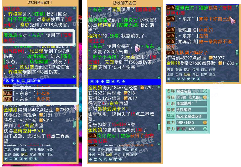 副本是一个除了蹲36和SX爆发矛盾比较多的地方,每天每个区平均基本都有好几十队刷FB,人多事情就多了起来,事情一多,就会有些许的摩擦。比如队员挂机、队长挂机、带队的队长不动、辅助死人不救........ 小编今天给大家带来的就是发生在各种副本里的二三事,这些经历,你有没有遇到过一两件? 万兽一般进副本都会挂狂抓,虽然没有飞机的输出高,但是也算是一个输出了;各位万兽的玩家是不是这样? 万万没想到,这里有个1224飞升的万兽,进了110副本跨服之后,变着龙女卡挂防御?居然有这样令人窒息的操作,很强势。 就是这个万兽了,大家可以看一看。不过这件事发生之后这位玩家澄清说是因为有事出去了,由没玩过游戏的女朋友帮忙看的号,不懂。所以,希望能谅解一下。女朋友:“这个锅我背!” 好的,知道你有女朋友了。微笑.jpg。 说完了挂机,我们来说说不挂机。一般辅助不挂机的时候,小编下FB就会异常安心的挂机;但是你们会不会遇到即使辅助不挂机也不救你的情况,要么你输出不够是奶粉,要么你挂机不加血不加蓝。但是这个锅还是要辅助背.... 下面这种情况,小编就没见过了,同队友是了,身为不挂机的DF把这个死了的队友救了起来,不过下一回合被对面怪集火死了,不救也没什么,但是反而要被嘲讽?谁说DF就不能被打死了?你试一试被集火? 这个操作有点过分吧?这让辅助以后怎么救人?辅助玩家有遇到过这种人吗? 不知道你们现在多少级,能打多少级的FB..90级的副本里有一个环节,里面的怪是三只齐王死士,必须要同一回合给打死,不然就会无限的“不求同年同月同日生,但求同年同月同日死”。 一般小编进去这个副本几个回合基本能将三只全部给打死,毕竟五个单位加五个BB输出。 但是,真正的死士就是在主公已经不在的情况下,还顽强的坚守大本营。活生生的将五个玩家给拖到没蓝给打死了......整整打了37回合。让小编怀疑自己打的90FB是不是个假的副本。 以上。 小编记得很久之前的FB不是这样的,那时候的人挂机,是因为要打字聊天,基本都看着号,FB俨然成为了一个交友的最佳场所,没事调侃下你的染色,讨论下你的BB..... 副本里的二三事,欢迎大家投稿,将发生在你身上及周围的FB里的各种事告诉我们,或者将你在FB里遇到的那些无素质玩家曝光!还副本一个愉悦的交友刷怪环境! [编辑:Hi、何同學]