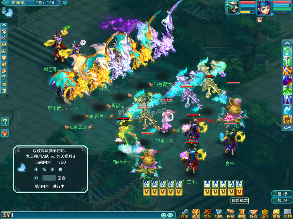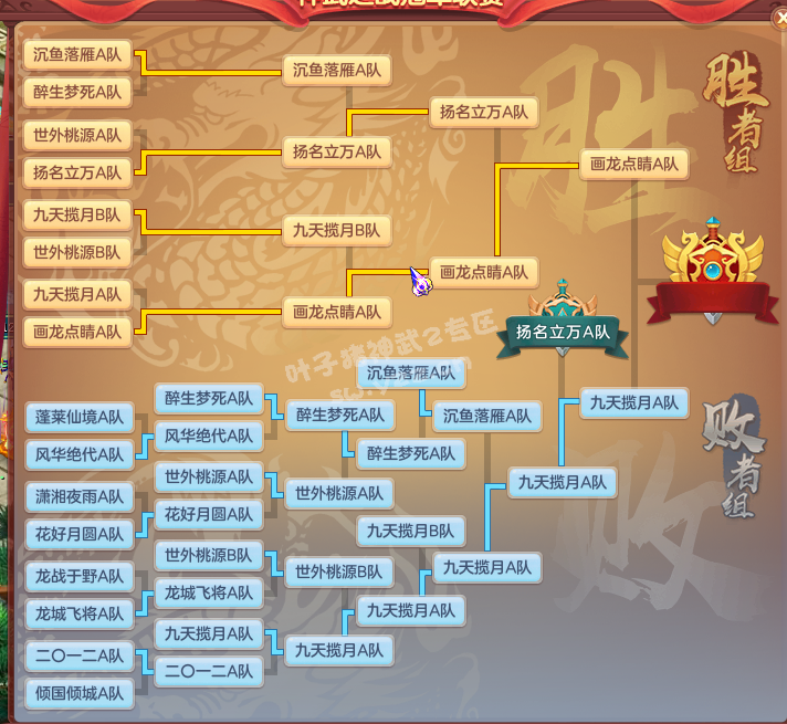 在上个周末这届服战终于决出了两个队伍走进最后线下决赛——九天揽月A和画龙点睛A两个队伍。本届服战可谓是今年最重要的一届服战各个队伍都提前做好了准备为了在这届服战中大展身手。 本届服战让我们看到了一个强势的队伍九天揽月A队,一路过关斩将最终和画龙点睛A队会师决赛。我们先来看一下两个队伍的晋级之路。 画龙点睛A 在第一场比赛就碰到了他们的决赛对手九天揽月A,九天鸟阵画龙龙阵,九天小克画龙,开场九天拿到了全场的一速。开场画龙尝试点杀九天的DT一波但是未能成功,最后双方开始互清宝宝。 5回合九天大唐三刀想直接带走对面的DT但是这波点杀失败,次回合画龙的DT直接破血带走了九天的DT。 8回合画龙的DT四刀点九天的WZ,狂暴直接带走,次回合九天的DT直接两刀带走了画龙的DT,双方有来有回。 11回合画龙DT的运筹配合宝宝的输出再次点杀了九天的DT。 13回合九天的DT神游项链小精灵技能连神2次但是最后还是难逃一死。 18回合画龙的DT一鼓作气直接带走了九天的LG到目前为止九天只有PT的血量上限还是满的,之后九天的一速FC一直想要慈航但是没有成功最后26个回合败下阵来。 之后画龙的两场比赛碰到九天B和扬名的队伍最后都以评分战胜了对手走进了最后的决赛,画龙A队成为了胜者组冠军。 接下来我们在看看九天揽月A队,之前一提到九天A队大家肯定都会想到冷别赋的队伍,但是这次A队出来之后肯定有很多人会跟小编一样很疑惑为什么这次九天的A队不是冷别的队伍了呢?看了九天跟画龙的比赛以为九天A队的本届服战不会走的特别远,没想到最后连克各个强队最后跟画龙在决赛相遇,我们来看一下九天在本届服战的表现。 九天A队在败者组的第一场比赛就碰到了种子队伍2012,最终双方激战58个回合最后九天A队评分以微弱的有势战胜了2012挺进下一轮。、