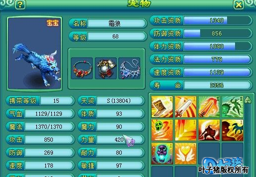 神武玩家展示下自己超多技能的霜狼,闪瞎你的眼。