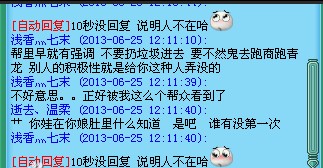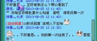 然后就是我本人和他的对话,我们服务器是对酒当歌- -算是开了快2个月的新区吧,帮里都是游戏里认识的,呵呵,这算是插播广告。