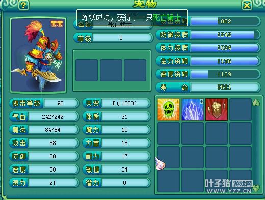 相关资讯: 大家看了那么多直播,我来点另类的,直播炼妖! 材料准备妥当!死骑宝宝已备好! 第一只四技能材料: 第二只四技能材料打必杀顶鬼混失败顶了舍身: 第一只三技能宝宝把鬼魂顶掉: 4个全好了!准备开工!