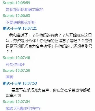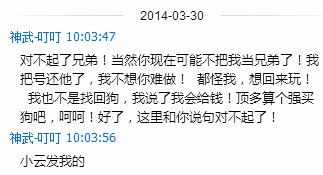 相关资讯: 因为是那个烟花给我的,但是小云要面子,在担保地方又说是他还给我的,还说会给钱,到了给钱的时候说了句尿尿憋不住了就走人呵呵! 然后我直接就QQ发给他,说不要说得那么好听,然后他开始喷我了。