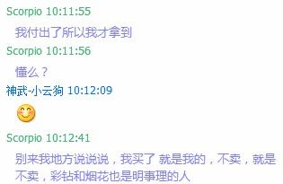 相关资讯: 这是我和他聊天记录的终结,他也没回过我话。 然后到了当天晚上那个DT又被追回了,然后我也不知道怎么回事,就去找彩钻也就是第一任主人,结果他就不回话了,电话也不接,后来我找了烟花,据说是小云给了第一任主人几百块,说让他别管这事了,呵呵,这人的素质也就这样。 彩云大伙来看看咯,他们说要的证据,证据在这求你继续说! 你看挺他的高级号这么多,感觉有点撑不住啊!难道给追回狗这么便宜吗?