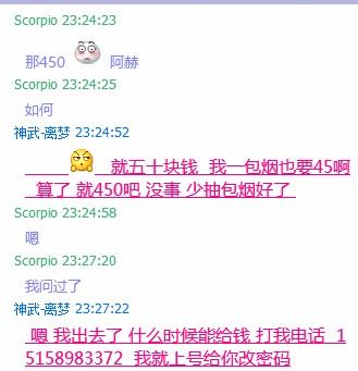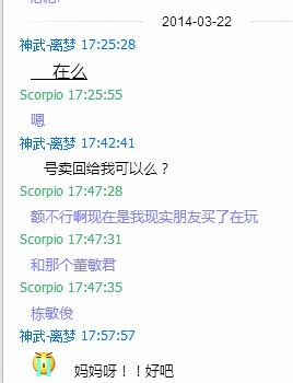 相关资讯: 这是那个追回垃圾DT。 下面来证据,先发130MW替他撑腰图。 这是他大哥,据说昨天晚上是追回狗开的不是MW本人。 下面来我和那个垃圾95DT的交易聊天记录,因为我QQ是一个月自动清除缓存,所以他截图的图片没有,我只有截图我和他对话了,谈拢价格,450 相关资讯: 这时候我已经把钱打过去了,那张裂开的图是我拍的打过去的钱,所以他之后发给了我仓库密码和绑定密码。 那个MW看到了么?这就是我和DT的交易记录,你不是说我瞎说的?现在给你发出来了,懂了?接下去说为什么他追回。 相关资讯: 那个号买的时候是天机组的高手,然后90级,那时候买来是想和现实同学玩95,然后升了95,跑了修,买了通灵F,BY47出来后,洗了200RMB,出来了,然后扔了几百块染色坐骑,想要好好玩下去。结果这时候给我蹦出这种事。 如果大家眼熟楼主的话应该知道我现在在玩105了,所以这个95DT给那个我现实同学了,一个95TM,这时候她是来找我买号的,说想回来。 相关资讯: 28号,也就是5天后,他一句话都没说,直接把DT追回了,并且强买,因为原价500,我和我朋友扔了600进去,那就想既然他强买,1100不过分吧? 扔了这么多钱,他愣是要给这么多,还是强行低价买。 相关资讯: 650,楼主服软了,一个通灵F的钱,别的染色洗BB开出套装SWB的钱都不要了。 之后说好的打650,然后就不回话了。 相关资讯: 因为在29号晚上的时候他不回我,我就去找第一任账号的主人,说起来很有趣,因为这个DT是QQ邮箱,但是QQ不是卖我的人的,所以我去加了下那个QQ主人,发现他是DT的第一任主人,楼下给大家带来我和第一任主人的截图。 这时候给大家科普下这个DT的事,第一任是叫彩钻,他是DT的第一任主人,然后他当时想卖,但是觉得没几块钱,就送给了当时他的好基友,小云狗,也就是卖我的那人,小云狗玩了DT有一年多,卖给的我,我玩105后把DT交给了我现实同学。 相关资讯: 然后当时小云狗找彩钻追回了DT号,但是因为担保也是我们区的一个名人130DT,而且那个DT关系和我不错,所以彩钻选择帮我把密码改回来。 在我地方说因为尿憋死装了3个小时的死人,现在因为我把号密码改回去,瞬间说要去打钱了,真的是无奈啊! 相关资讯: 过了10多分钟DT又被改了密码,原来是小云狗去可怜兮兮的找第一任说好话去了。 然后楼主把他的号给了他现在还在彩云玩的一个基友,让他决定。 相关资讯: 我和烟花在YY商讨了半小时,他说帮我是在理,小云追回就是他错在先,而且我是付了钱的,所以他决定把号给我。 30号的时候那个DT已经在我朋友地方了,但是那个小云狗又在我朋友那个担保的130DT地方装B,我去找找还有没有他发给我的截图。 相关资讯: 因为是那个烟花给我的,但是小云要面子,在担保地方又说是他还给我的,还说会给钱,到了给钱的时候说了句尿尿憋不住了就走人呵呵! 然后我直接就QQ发给他,说不要说得那么好听,然后他开始喷我了。 相关资讯: 他以为我不认识巧克力,然后一直在我地方很得意,这是巧克力和我说的,让我拿回来了就行。 我付出了所以我拿到,所以我觉得我想卖他就卖,不卖就不卖,没什么不对!更加抵制强行低价买! 相关资讯: 这是我和他聊天记录的终结,他也没回过我话。 然后到了当天晚上那个DT又被追回了,然后我也不知道怎么回事,就去找彩钻也就是第一任主人,结果他就不回话了,电话也不接,后来我找了烟花,据说是小云给了第一任主人几百块,说让他别管这事了,呵呵,这人的素质也就这样。 彩云大伙来看看咯,他们说要的证据,证据在这求你继续说! 你看挺他的高级号这么多,感觉有点撑不住啊!难道给追回狗这么便宜吗? 相关资讯: 我现实朋友叫栋敏俊,他现在又收了杨十八我们区一个90+WZ号,追杀那个DT,波兰发的截图就是昨天 我朋友喊DT接GJ时候发的。 不多说啊,这种人就是该杀,仗着高级号撑腰,现在世界还在喘呢 大家也看了,我的对话都是一句接一句的,如果他继续说我删记录,我是真的无话可说,10天了,被追回,我是一句话没说世界,今天是他自己说的要证据,我才发的。 我被追回10天,一句话没吭,现在你要的证据,我现在发了,如果你愣是要因为130撑腰颠倒是非黑白,我也不想多说什么,毕竟我证据图都在这,你想在彩云世界里颠倒是非那也随你,我相信各位看官已经有了认知。 [编辑:绝对懒人]