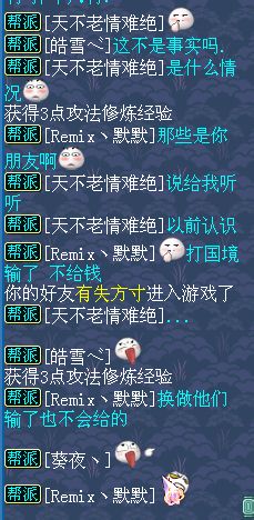 相关资讯: 关于傲视群雄少主国境赌注2W5金币,我不想证明什么,我们也不缺钱,只是看不惯这种人还有脸在区里玩下去,你们要杀我就杀我好了呗。 无所谓啊,反正你们也挺逗逼就跟你们玩玩,这是他开恍惚号叫我先接GJ的,所以上传点聊天记录图,还有你们那些要追杀的我就杀吧。 恍惚叫我接国境,为了增加刺激就增加赌注! 赌注决定每人5000JB,恍惚也爽快的答应了。 相关资讯: 时间也定好了,4点。 国境打完了,他们不给钱,就向他们帮派管事的说事去。 相关资讯: 他也承认打国境输了不给钱。 他还说因为我们不缺钱,所以给了,赌钱有这样的?输了觉得你钱多就不用给了? 相关资讯: 他们帮派的管事都说了答应就要做到。 接下来是之前的聊天记录。 一开始我说赌每人500金币,他就说输了升级。 相关资讯: 因为他本来就要升级,这样我们输了太亏,就坚持说要赌金币。 还以他的队友没金币为理由,硬要说赌升级。 相关资讯: 他自己说不缺钱,就不肯赌金币。 死活都硬要说赌升级。 相关资讯: 2500嫌少就升级到5000金币! 还说我们输了给金币,他们输了升级,有这样的赌法的么。 相关资讯: 这几天我也是过激了,我也表示道歉,我只是希望和我的伙伴们一起快乐玩耍。 国境证明图,谁胜谁负一目了然。 [编辑:绝对懒人]