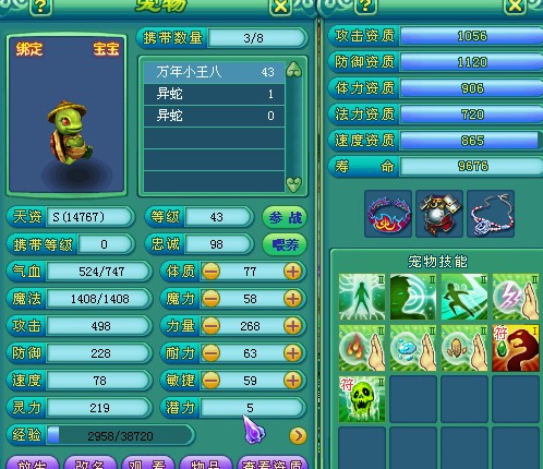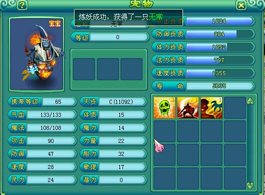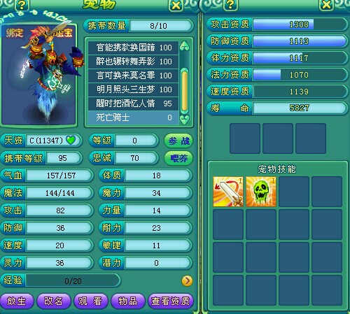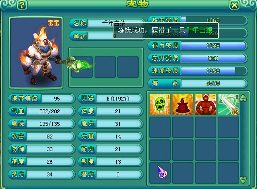 相关资讯: 炼妖的出来的霜狼,技能就不说了,资质还不如原来洗的呢。 还有这死骑,虽然舍身还在,但是这资质,不敢直视啊。 相关资讯: 看看这死骑,我也是醉了。 相关资讯: 这个就是我合出来的5技能金钱龟,霜狼和金钱龟的结合体。 相关资讯: 看看这死骑,看看这资质,不能忍。 终于出了个5技能的猴子了。 相关资讯: 渣渣海象。。。 相关资讯: 看下我的骄傲,合出来的7技能金钱龟,再上个护符就9技能了。发现炼妖出来的就算是好技能,资质也绝对不会是好的。 [编辑:绝对懒人]