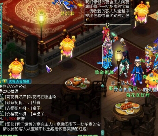 今天为了跟进一下 楼主自己举办了一次。 具体每天能几次我不太清楚 我今天总共参加三次 都有奖励 一次从开始到结束半个小时左右。 我觉的每天有时间的话三次以内就可以。 做人不能太贪婪啦。 作为举办方 是可以搞二个小活动的 第一个就是神武那四个话剧 每点一次10w信誉 第二个就是撒红包 红包是随机去某个玩家手里的 那个玩家要像科举时候找珍珠一样 盯紧了那两个红包券哦 选对了才有奖励 每进行一次这个活动 举办方会花费10w—12w信誉这样。 如果你是主办方 但是又不舍得花那么多的信誉的话 不用怕。 每上过一道菜 司仪就会组织小活动 我目前知道的有答题 击鼓传花 抢宝箱 。 首先是答题 因为楼主比较爱抢。。。抢36呀sx呀我都蛮喜欢的 所以也很爱抢题答 这个答题真的要手快脑快 抢的时候要再司仪倒数后喊开始立马做挥手状态 快捷键c什么+1之后司仪会宣布谁最快 然后让最快的在十秒内要回答对他的问题才有奖励哦 。 |