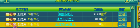 相关资讯: 回顾下昨天晚上胜者为王区里面土豪为了拍到一只神兽一直炒价格的画面,只见价格一直在升。一直神兽的价格已经5000多人民币了。因为是新区仙兽还没出来,到时候仙兽出来价钱得多少啊?你们自己猜一猜。。。 大概是离结束的时候还有8分钟的时候开始炒的价格吧!那个时候就已经炒到了38300金币了。 然后我没看懂的是为什么上面明明提示还剩下大概是8分钟的时间,然后到这里的时候又变成了9分钟。。。而且价格还是在一直稳步上涨的。到这里的时候差不多就已经变成了43300金币了。 相关资讯: 4500了 还在继续 土豪们真的是!!! 46400了,有钱就是好,想怎么任性都行。 47300金币了。