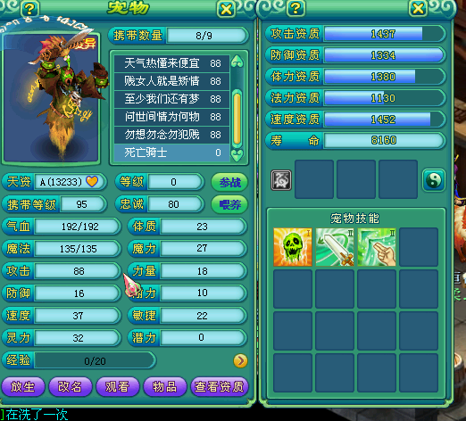 相关资讯: 直播双通灵符,丹不多,就随便洗洗。 不要那么大声告诉别人,我这号是花了600块买来的,有双通灵符,感觉就值300大洋了。 号还不差,还有个雪狗,还是双饰品的,这个号感觉挺值得的。 立即起来嗨!通灵死骑是必须的,希望点一下就红心五技能。 和剧情的差不多,就是没有5技能,资质也没有爆表。 用身上的钱打书试一下,要是舍身没有掉就用了。 相关资讯: 果然是个坑,舍身一会就没有了,看来还得重新洗过。 任性,继续洗! GG思密达,四技能的渣渣死骑,留着以后再洗,留些丹洗别的,还有一张通灵符呢。 第二张符决定洗只大猴子,感觉大猴子还是很不错的。 OB,感觉也不怎么样,看来变异都是个深坑。 好了,完蛋了,丹已经没有了,和死骑一样,留待以后再洗,艰苦的旅程。 [编辑:绝对懒人]