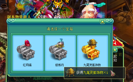 相关资讯: 在经历过种种磨难之后,我开始不相信直播有好东西的,毕竟这是江湖传说,就相当于大圣法力无边却拜倒在如来手下一样,说好的法力无边呢?结果只是天外有天。所以培育礼盒里的神兽灵只是人外人的,我们只能拿一个凤羽,还要兴高采烈的。 90FB是不刷了,但100FB还是要去刷的,所谓的这条路不行就换条路走嘛,人不能随随便便但是一定要像酱紫随机应变。然而万万没想到的是,即使走了另一条路,依然是两岸枯草,连朵花都没采到。3次的100FB,就3个箱子,你猜我拿到了什么,10个还童丹哦。。。。 接下来就是开箱子的时间了,一共就3个箱子,怎么说呢,除了九尾狐饰物是正确的选择,其他都充满着陷阱,不过这也是值得高兴的,毕竟预示着还是有苦尽甘来的一天的。