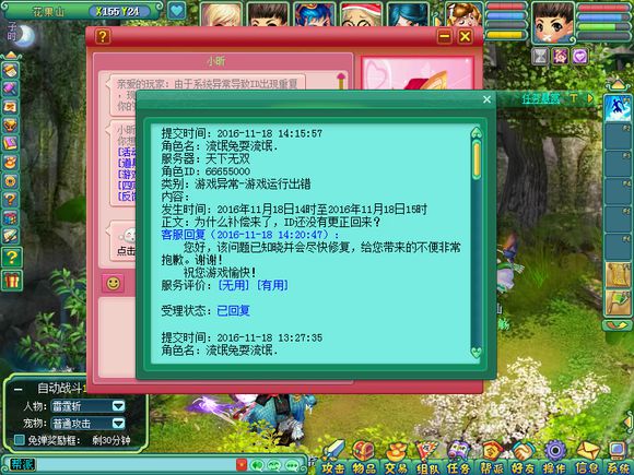 相关资讯: 本来是天下无双的一名渣渣的玩家,我唯一值得庆幸的是,我申请到了一个很好的ID66655000,今天一更新我的ID就变成了69010027,多益也太特么坑了吧,想把我ID拿去当靓号拍卖吗??然后呢,不说一句就直接丢你个垃圾ID回收你现有的ID拿去拍卖???? 我发现了一个问题,为什么左边的ID个右边的不一样? 以下是申述的过程和客服给出的回复。 我就想说,你们的补偿是给了补偿然后呢,就没有然后了;还是说补偿之后还会把我的ID还给我,我就等着看; 补偿是来了,1000金币,但是ID呢?我重新开机重开游戏,看到ID还是这个样子?我要求还给我的ID; 继续追问为何ID还没有恢复,客服表示正在修复;知道了,在修复,希望这个修复别让我失望!! [编辑:Hi、何同學]