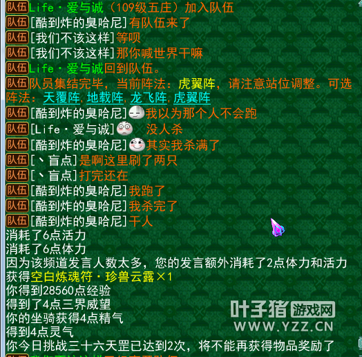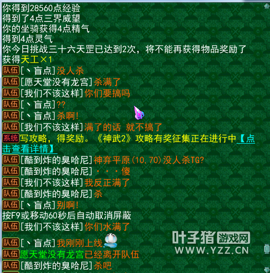 今天小编杀满三十六天罡之后,原地居然有个天罡没人杀。 队里有小伙伴有人没杀满,果断的陪杀了,杀完之后有了意外的收获。 可能是两只天罡刷在一起,其他队长可能没有看见。 [编辑:一剑西来]