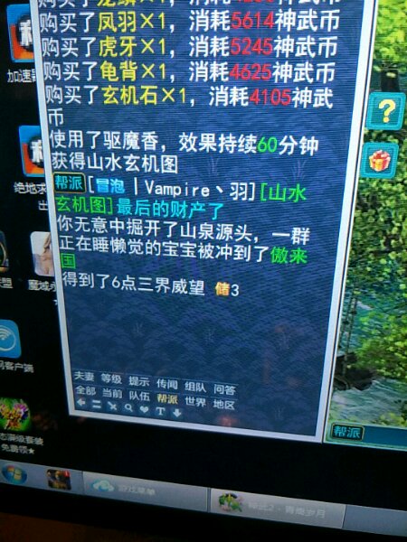 想要神武币挖山水,想要信誉挖山水。 搏一搏单车变摩托,赌一赌摩托变吉普。 下面有位玩家搏一搏吉普变共享单车,跟小编一起来看吧 三十万的神武B,不多也不少了。 先换几张山水玄机图先,试试水深不深。 第一张就挖宝宝窝,运气有点差,再接再厉。 第二张高级感知,不错价值几万。 紫竹清露,大概亏个1.8万神武币吧。 挖了一个宝宝窝跟妖王洞了。 在换三张玄机图,又挖了一个宝宝窝。 刚刚挖了神兽之灵赚一点,现在又赔进去了。 挖了一个不错的4级宠物护符,也算赚了一点。 先锋一本,小赚。 珍兽之灵,亏一个五宝的价格吧。 坐骑元神又是小赚一笔。 在换5套玄机图,赚了100多万信誉。 珍兽之灵、千年人参、虹彩,亏了两套玄机图的价格。 先锋,赚了赚了。 又来一颗珍兽之灵。 挖到这里,已经亏掉二十万神武币了。 最后三套玄机图,又挖了一个珍兽之灵,还可以在来一套。 二十九万神武币败光, 小编提示:山水虽好,切勿沉迷。