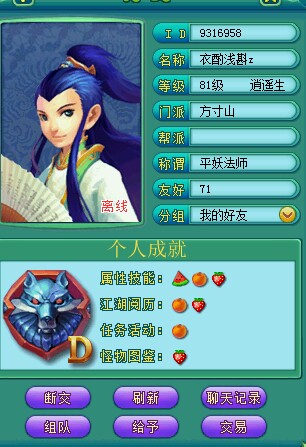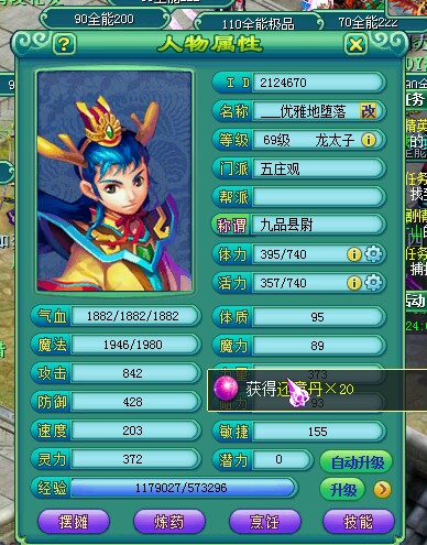 相关资讯: 这个是当年我们宿舍的,不过他号是比我晚玩了很多擂台被一直睡。 属性图,这ID应该也不晚,那时候神武很好玩。