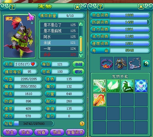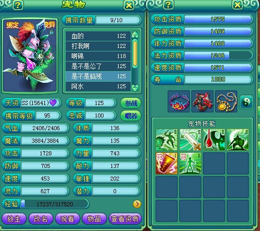 相关资讯: 兜兜转转4年,号又回到我自己的手上了,心酸的回忆。 4年后的我,还是一个渣渣大唐。 一开始啥都不懂 升到55级的时候运气好一次洗出了个BY马面,是那种绿色的(最原始的颜色),后来扫塔时候看到一个人的马面居然是白色的!!当时根本不知道居然还可以染色,然后楼主秀了自己的智商,被基友们嘲讽一脸。 这个号改了两次名字 第一次叫欲语泪先流,第二次叫REIS 欲欲欲,第三次则是我那个逗比现实朋友花了400软妹币改成这个,去100 110FB都没人要的俺老孙来也。 这号转了起码4手,刚上个星期五从朋友那买回来的,最开始的玩的时候,笑傲开区不久,记忆中那时候剧情才接到70的秦广轮转,那时候的神武还是不充钱照样玩的好好的那时候的神武全是一群卡级的朋友玩的很嗨那时候的神武没有这么多任性高冷的人。 相关资讯: 当时帮派里全是59的,当时还没有收益限制啊!当时把宝石段到5就高兴的要死,老玩家应该有印象当时洗出一只BY猫女都开心的要死,哪会像现在一样,洗BB不是高ZZ高成长不是五技能眨都不眨眼的回炉。 后来升了69 打出了满攻武器,有了破血,属性能看了于是组到了一个固定队,也找到了第一个老婆(虽然之后知道是男的)若相守,不离。 那时候最愉悦的事情就是星期六放假回家,看到自己的神武币从几千涨到八九万甚至十几万。 那时候的我是超级屌丝的,带着几只龙女跟95刚洗出的死骑,就跟着他们混SX了,当年卡99时候的垃圾舍身死骑。 相关资讯: 99级是这个号的巅峰时期,毕竟停了一年多,BB也基本是BY的,装备什么的也全满段了。 当初99时候的BB,好几只BB都是一次BY的,金刚狼,大波,死骑,芙蓉全是一次BY的,脸好!总共三只47,都洗几次差不多可以用了,坑的是芙蓉,几千丹吞了,后来草草了事。 五技能死骑没什么用,加点也错了,应该做只血耐控制的,高恐怖高援助高神高幸运剑气高强壮,谁用谁知道! 相关资讯: 大波我染了十几次吧,就是染不到白色了,不过想想这个颜色也还是不错的 当时反制还是很流行的 所以别问我为什么打高飞, 第三只47 当时胆小性格,高飞高反高夜高灵敏高吸,真心的,躲避你到吐血,反你到吐血 (当时反制还是100%几率,后来削到50 还能用,最后削到40% 只能说,反制88) 相关资讯: DT看过来,36时候,如果你觉得自己伤害不够扫不死一只BB,推荐你们带一只高速高追的BB 前提速度不能比自己快,低个30到50左右都合理,像我这只47一样。 谁用谁知道,我高追BB多,我坐骑打的嗜血,乘胜,你能想象这只死骑叠满三次嗜血效果后的伤害吗?HF带小审判,真心伤害爆炸!第一回合基本上能追死你扫的那只BB。 高吸高神在,双生存保障,当时反制还是流行的,反一下吸口血,触发反制再吸一口,这感觉倍儿爽,你也要注意36BB的血量,挑残血的追,不过几回合你就叠满了嗜血的效果,砍一下36的PT ES都能有800 900的输出, 当然,现在小精灵什么的出了,不是太垃圾的DT都能扫死一只BB。 相关资讯: 那个时候我超喜欢乘胜的,尤其大波跟死骑配合自己,PK时候砍一下,BB出手追死一个再追一个(当时血功耐攻BB不是很流行)曾经有次PK我的大波追死三个,一个回合输出了4次,是PK打到大后期了,全是用药拉的人 全是残血,追一个死一个,就这样翻盘了。 超喜欢追三个,追四个的那种快感也是我喜欢乘胜的原因。当时我没有跟风选升龙跟坚守,当时我发现嗜血是神技,可是为什么都没人用呢,配合乘胜真的是把他们的效果发挥到极致了,现在血功BB横行,乘胜BB也难有出头之日了。 [编辑:绝对懒人]
